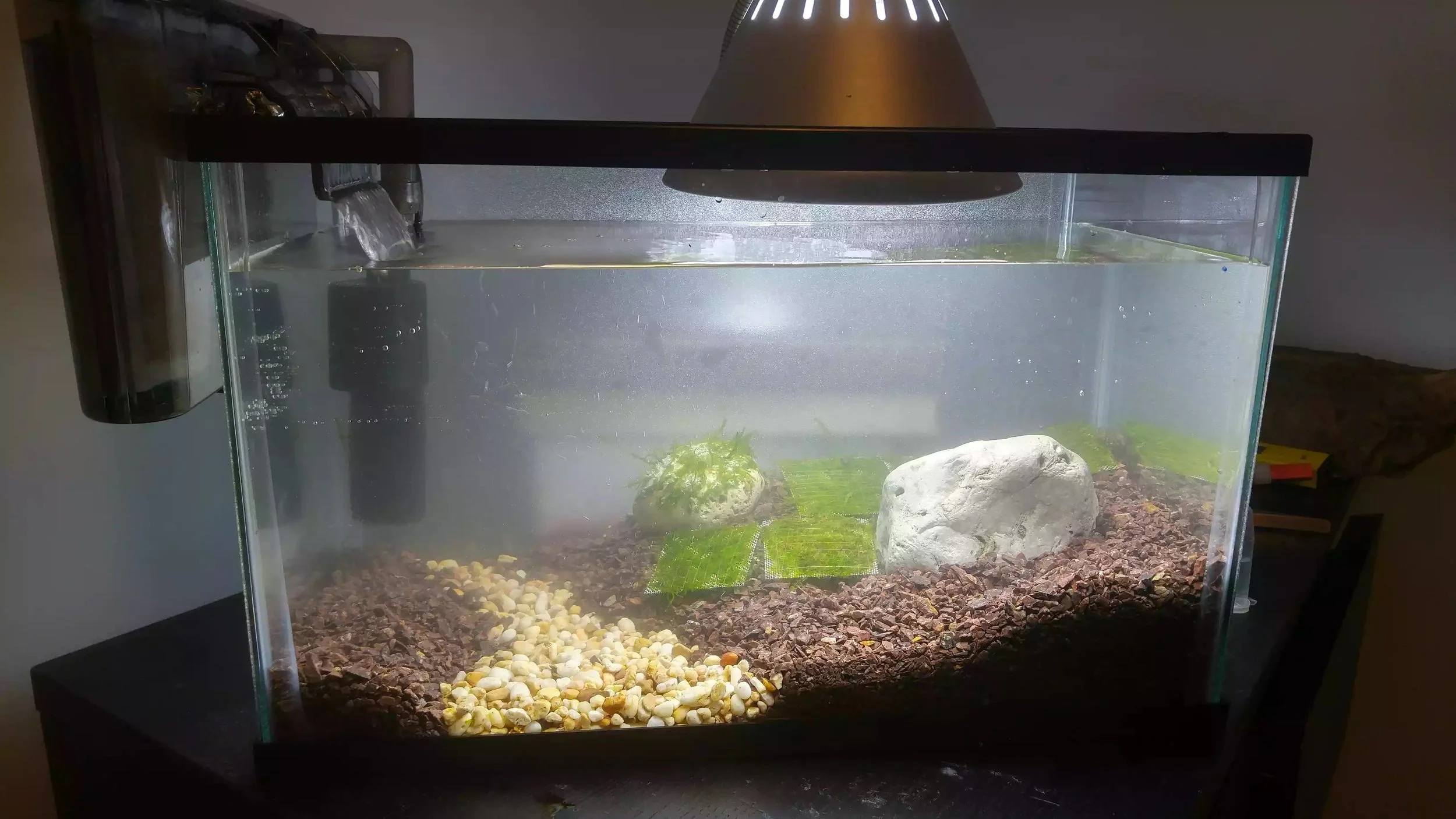 I bought a few different types of gravel from Amazon, and I found a few rocks outside. I bought pretty much everything on Amazon to be honest. I first had to sanitize them by carefully boiling them. Man was that scary! I thought trapped gases inside them might make them explode.