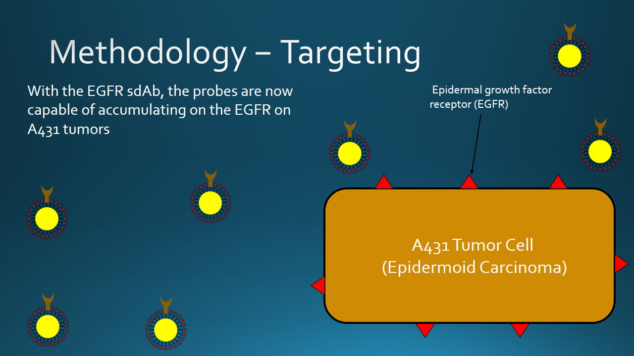 And thats it! Now we have a system that can be injected into the blood, diffuse through the body and accumulate in higher statistical significance in cells that over express one type of receptor. It is able to evade the immune system and the tumor will be imaged using three types of methods.