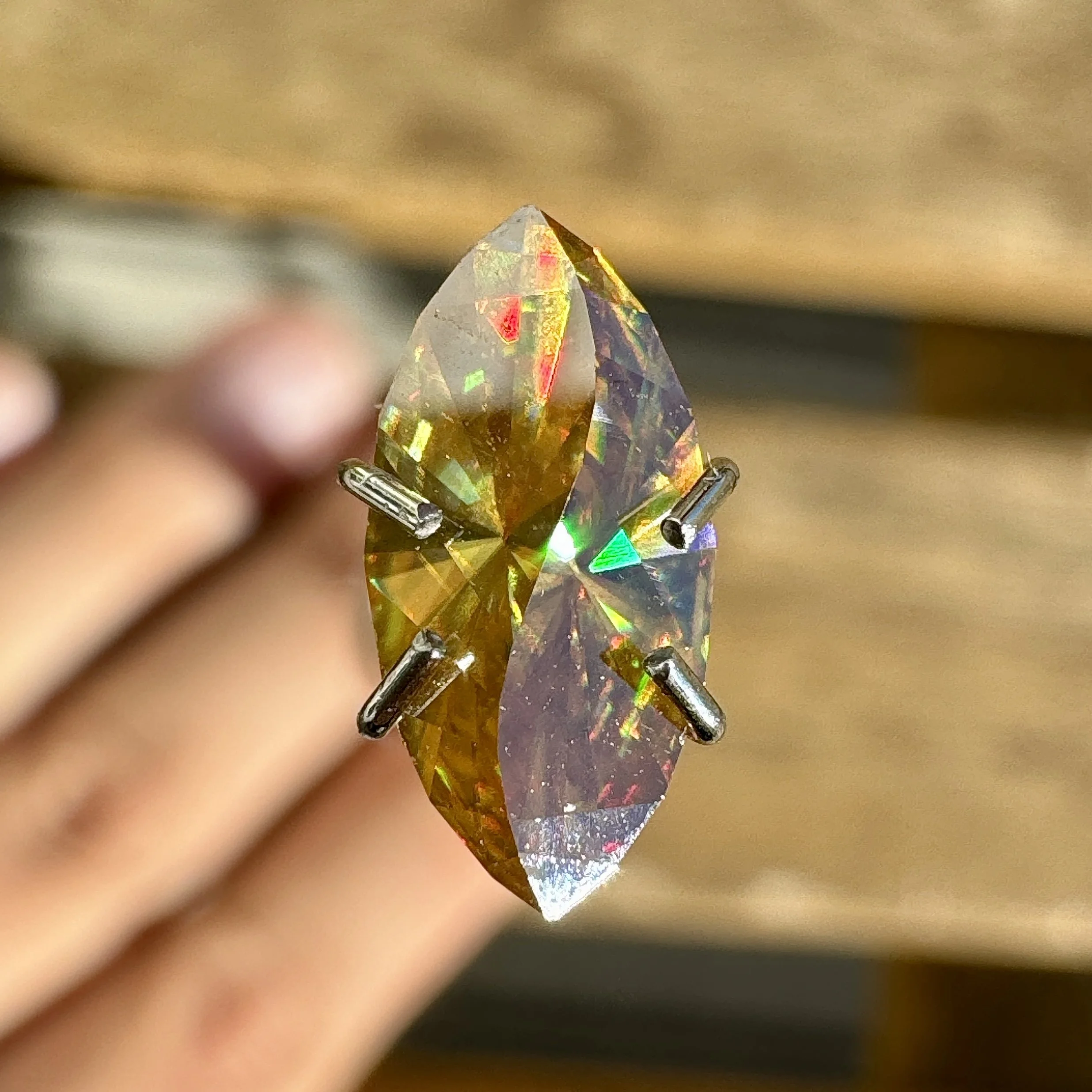 I work on a variety of material such as: Opal, Topaz, Cubic Zirconia, Ruby, Rutile, LYSO, LuAG, Emerald